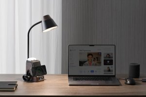 Stylová LED stolní lampa s integrovanou bezdrátovou nabíjecí stanicí Qi 3 v 1 pro mobilní zařízení.