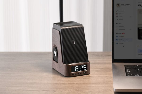 Lampa nabízí nastavitelnou teplotu barev CCT od teplé 2700 K přes neutrální 4000 K až po studenou 5000 K, každou ve třech stupních jasu. Vestavěný LCD displej zobrazuje čas ve formátu AM/PM a umožňuje nastavení budíku. Bezdrátové nabíjení Qi o výkonu 5 W a dodatečný USB výstup 5V/1A zajistí pohodlné nabíjení všech vašich zařízení.