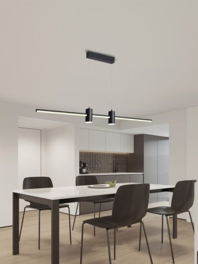 Lineární závěsné LED svítidlo je skvělou volbou pro osvětlení kuchyňských ostrůvků a jídelních stolů. Osvětlení lze upravit dle aktuální činnosti a zvolený odstín bílé barvy světla vnese do místnosti vždy jinou atmosféru.