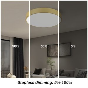 Stropní svítidlo IMMAX NEO LITE SEMPLICI SMART v luxusním zlatém provedení přináší moderní osvětlení do každého interiéru. S průměrem 40 cm a výškou 5,5 cm nabízí výkonné osvětlení s příkonem 36 W a světelným tokem 2736 lumenů. Díky funkci stmívání můžete plynule měnit teplotu barvy světla v rozsahu 2700–6500 K (od teplé přes přírodní až po studenou bílou) a přizpůsobit tak osvětlení aktuální náladě či potřebě.