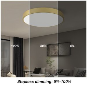 Stropní svítidlo IMMAX NEO LITE SEMPLICI SMART v luxusním zlatém provedení přináší moderní osvětlení do každého interiéru. S průměrem 60 cm a výškou 5,5 cm nabízí výkonné osvětlení s příkonem 60 W a světelným tokem 4500 lumenů. Díky funkci stmívání můžete plynule měnit teplotu barvy světla v rozsahu 2700–6500 K (od teplé přes přírodní až po studenou bílou) a přizpůsobit tak osvětlení aktuální náladě či potřebě.