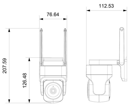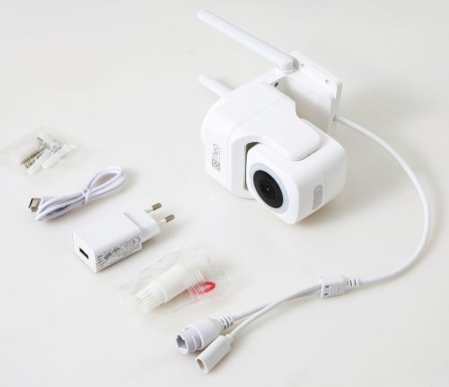 Chytrá venkovní bezpečnostní kamera s detekcí pohybu disponuje otočným mechanismem pro monitorování v zorném úhlu 360°. Snímač nabízí rozlišení 4 Mpx a je schopný snímat video v rozlišení 2560 × 1440 bodů. Pro případ zhoršených světelných podmínek je přítomen IR přísvit do vzdálenosti až 5 m a bílý LED přísvit pro barevné záznamy v noci. Součástí kamery je integrovaný reproduktor a mikrofon, který umožní kvalitní oboustrannou komunikaci. Připojení lze jednoduše realizovat jak bezdrátově skrze Wi-Fi, tak drátově pomocí RJ-45. Propojení kamery pomocí aplikace v mobilním zařízení umožní pohodlný vzdálený přístup, ovládání kamery, pořizování záznamů či fotografií. Natočené záznamy je možné ukládat i na microSD kartu do kapacity až 128 GB. Je také kompatibilní s inteligentními hlasovými asistenty Amazon Alexa, Google Assistant a Apple Siri a standardy ONVIF a WebRTC.