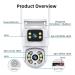 Chytrá venkovní bezpečnostní kamera s detekcí pohybu disponuje otočným mechanismem pro monitorování v zorném úhlu 360°. Dva snímače nabízí rozlišení 2× 2 Mpx a jsou schopné snímat video v rozlišení 1920 × 1080 bodů. Pro případ zhoršených světelných podmínek je přítomen IR přísvit do vzdálenosti až 10 m. Součástí kamery je integrovaný reproduktor a mikrofon, který umožní kvalitní oboustrannou komunikaci. Připojení lze jednoduše realizovat bezdrátově skrze Wi-Fi. Propojení kamery pomocí aplikace v mobilním zařízení umožní pohodlný vzdálený přístup, ovládání kamery, pořizování záznamů či fotografií. Natočené záznamy je možné ukládat i na microSD kartu do kapacity až 128 GB.