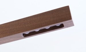 Designové závěsné LED svítidlo kombinující přírodní ořechové dřevo s moderní technologií senzorového ovládání.