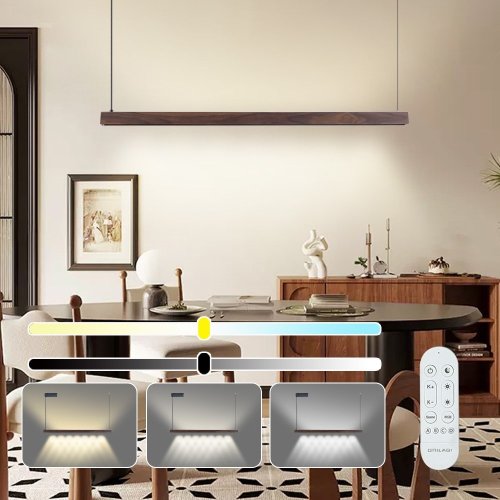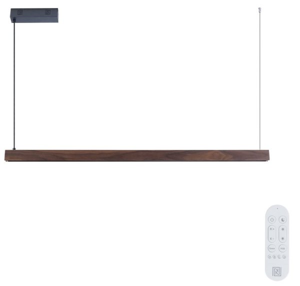 S délkou 122 cm a kombinací přímého a nepřímého osvětlení UP/DOWN vytváří ideální atmosféru v kuchyni, jídelně nebo obývacím pokoji. Ořechové dřevo s černou montáží dodává interiéru elegantní a moderní vzhled při zachování přírodního charakteru materiálu.