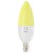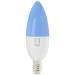 Moderní LED žárovka ve tvaru svíčky C37 s příkonem 4,8 W nahrazuje klasickou 40W žárovku při světelném toku 470 lm. Díky technologii RGB + CCT nabízí nejen volbu barevné teploty od teplé bílé 2700K až po studenou bílou 6500K, ale i plnou paletu barevných odstínů pro vytvoření jedinečné atmosféry.