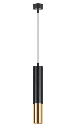 Závěsné bodové svítidlo PUNTO představuje kvalitní kovové svítidlo v elegantním černozlatém provedení, které je ideální volbou pro funkční osvětlení současných interiérů. Kovová hlava je zavěšena na nastavitelném závěsu o délce až 100 cm, umístěném na kulaté základně o průměru 6 cm. Osazeno je paticí GU10 pro instalaci žárovky o max. příkonu 9 W. Hlavu svítidla lze pro snadnější instalaci žárovky odšroubovat.