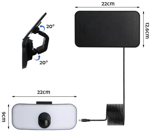 Venkovní solární LED svítidlo s teplotou bílé barvy 4000 K je ideální pro osvětlení zahrad, teras, vchodových dveří, okolí domů i jiných venkovních prostor. Díky externímu solárnímu panelu a 3 metry dlouhému kabelu lze samotné svítidlo dát i na místo, kde slunce nesvítí. Je vybaveno soumrakovým a pohybovým senzorem, který zajišťuje inteligentní osvětlení podle potřeby. Světelný tok 1400 lm při plném jasu a široký úhel vyzařování 120° poskytují dostatečné a rovnoměrné osvětlení. Li-ion baterie 18650 o kapacitě 4000 mAh zajišťuje dlouhý provoz i při nepříznivých podmínkách.