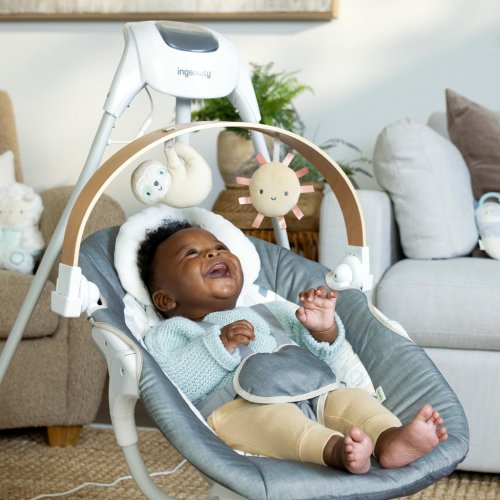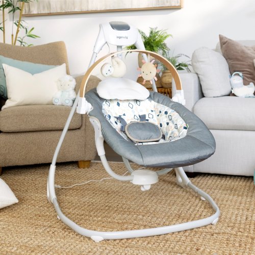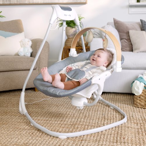 Zabavte děťátko a zároveň doplňte výzdobu vašeho domova s kompaktní houpačkou Ingenuity SimpleComfort – Parker.