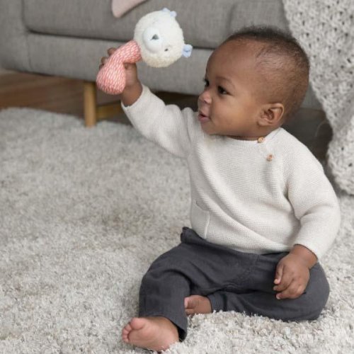 Když vaše děťátko zvládne své první schopnosti uchopení předmětů, mějte telefon připraven na sérii fotografií. Chrastítko do ruky Nate od Ingenuity je vyrobena v designu, který je nenáročný na uchopení. S kombinací plyšů je tato sladká plyšová chrastítko zábavná pro malé prstíky při zkoumání, držení a přitom náhodně. Jemné korálky vytvářejí klasický zvuk chrastítka. Medvídek Nate miluje zimní spánek, ale ze svého spánku se probudí, aby se mohl hrát s vaším děťátkem! Hračka podporuje kognitivní schopnosti děťátka a stimuluje jeho smysly