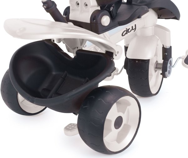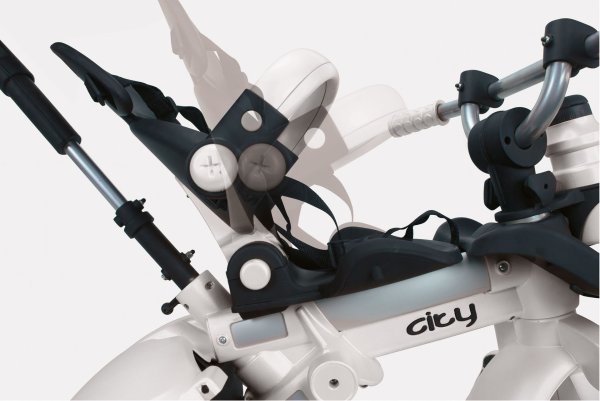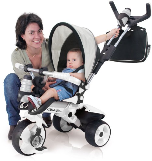 Dětská evoluční šlapací tříkolka s vodicí tyčí CITY MAX patří do nelicenční řady Innobaby, která je určena pro děti již od 6 měsíců. Naleznete v ní odrážedla, multifukční odrážedla, evoluční tříkolky a tříkolky. Moderní, designová, sportovně laděná evoluční tříkolka s kovovou konstrukcí a pogumovanými koly pro tichou jízdu, vypadající i jako sportovní kočárek, je díky vodicí tyči a ergonomicky tvarované podnožce pro nohy a dalším funkčním doplňkům, vhodná právě pro děti už od 6 měsíců. Tato tříkolka s dítětem doslova roste a přizpůsobuje se jeho vývojovým potřebám, což její největší výhodou. Z počátku dítě jezdí s nataženými nožičkami jako v kočárku, později je má položené na pedálech, ale díky vodicí tyči nemusí šlapat a může vnímat jen pohyb šlapacích pedálů a nakonec tříkolku plně obsluhuje samo. Veškeré doplňky se dají snadno montovat a demontovat.