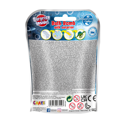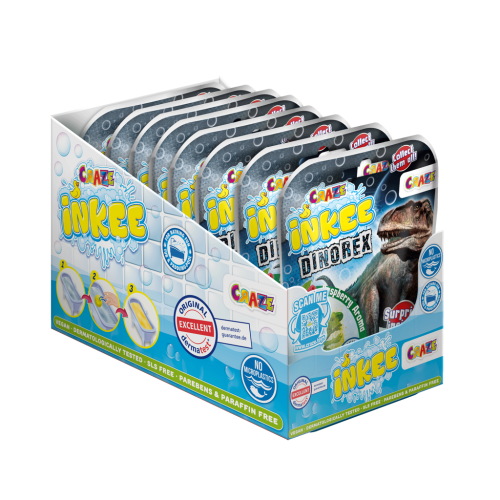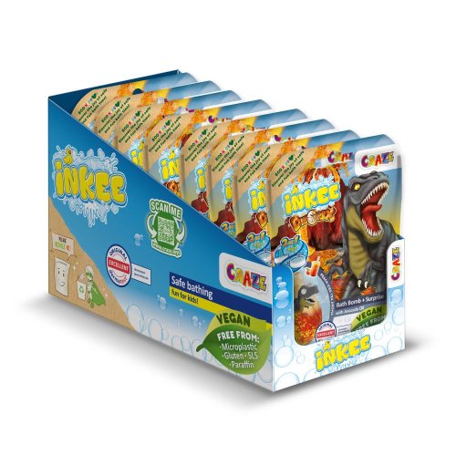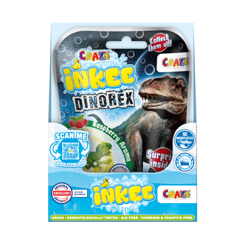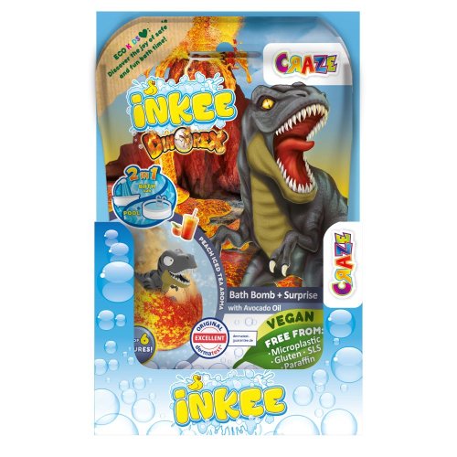 Velká 100g šumivá bomba do koupele s překvapením. Obsahuje 1 ze 6 figurek dinosaurů, které můžete sbírat. Šumivá bomba má tvar vejce s texturou a je dodávána ve 2 barvách na jednom displeji (červená nebo zelená). S vůní jablečného ledového čaje a avokádovým olejem.