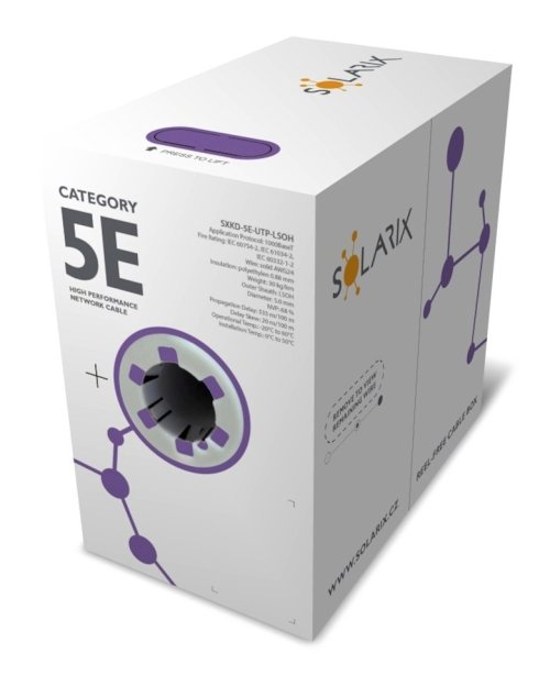 Kvalitní nestíněný instalační kabel kategorie Cat5E s LSOH pláštěm a certifikací reakce na oheň Dca-s1,d2,a1 testovaný až do 350 MHz.