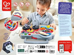 Interaktivní hrací deska pro malé fanoušky závodních aut. Hračka podporuje rozvoj motoriky dítěte – zábavná a praktická hra, která inspiruje k učení. Vaše dítě bude moci šroubovat, nebo utahovat šrouby a matice. Interaktivní kapota ukazuje princip příčiny a následku. Barevná světla a zvuky dělají hru ještě napínavější. Díky simulaci semaforu se děti seznámí se základními pravidly provozu. Odnímatelný nárazník zase vybízí k nápadité hře a přináší ještě více zábavy. Aktivity, které si děti vyzkouší jsou přepínání, otáčení, otevírání, posouvání, nebo zapojení. Interaktivní hrací deska je přenosná, vzdělávací a ideální na cesty – poskytne dětem hodiny zábavy a podpoří rozvoj motoriky, sociálních dovedností a nauky řešení problémů. Rozměry balení: 24 x 32,5 x 4,5 cm. Věk: 3+