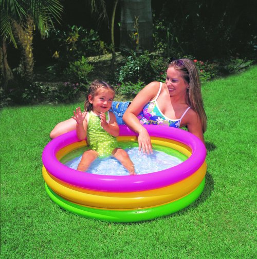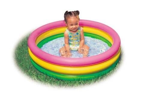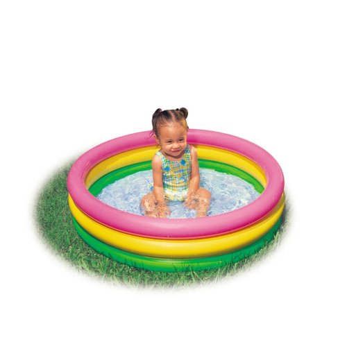 Barevný tříkomorový nafukovací bazének přemění každou zahrádku na malé koupaliště. Rozměr 86x25 cm. vhodné od 12 měsíců.