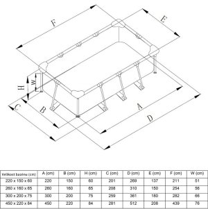Specifikace: Druh: bazénový set Konstrukce: pevná Barva: modrá Objem vody (90% výšky stěny): 7 127l Rozměry: 4,5m x 2,2m x 0,84m