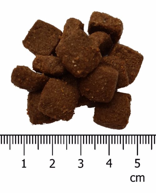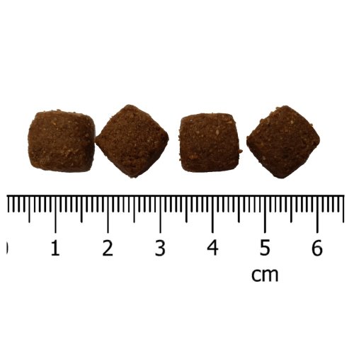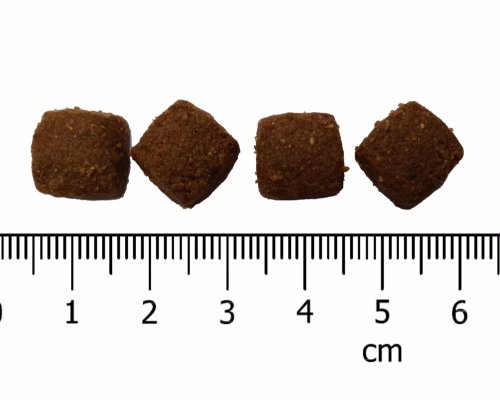 Analytické složky: Protein 29 %, hrubý tuk 18 %, hrubá vláknina 3,5 %, hrubý popel 7,5 %, vápník 1,2 %, fosfor 0,9 %, vlhkost 10 %.