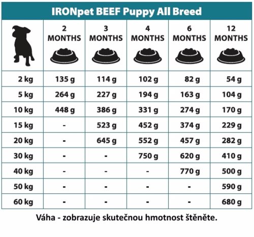 Jediný zdroj živočišných bílkovin s vyváženým poměrem bílkovin a tuku je použito hovězí maso - monoproteinová strava výrazně snižuje riziko vzniku intolerancí a potravinových alergií. IRONpet Dog Puppy All Breed Beef (Hovězí) neobsahuje lepek a kuřecí maso je tedy hypoalergenní, snadno stravitelné a vhodné i pro psy s citlivým trávením.