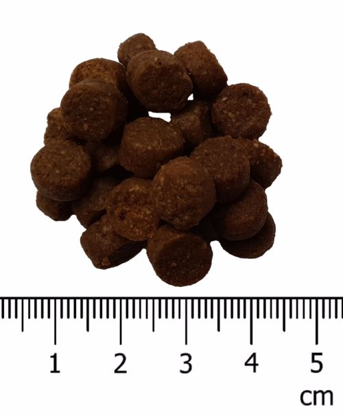 Analytické složky: Protein 29 %, hrubý tuk 18 %, hrubá vláknina 3,5 %, hrubý popel 7,5 %, vápník 1,3 %, fosfor 1,0 %, vlhkost 10 %.