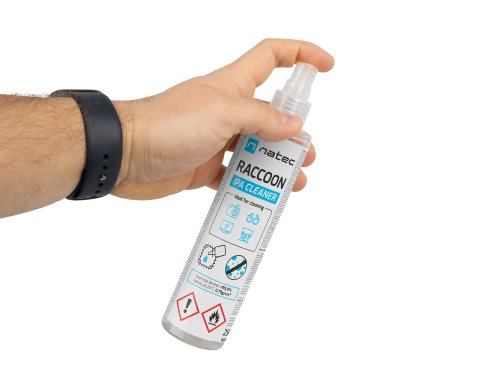 Natec Raccoon se snadno aplikuje díky lahvičce s rozprašovačem. Stačí jeden nástřik, abyste jej nanesli na hadřík a pustili se do práce.
