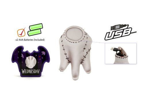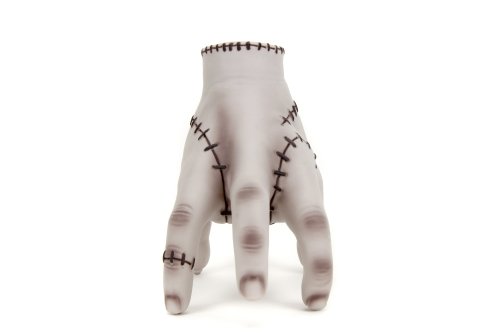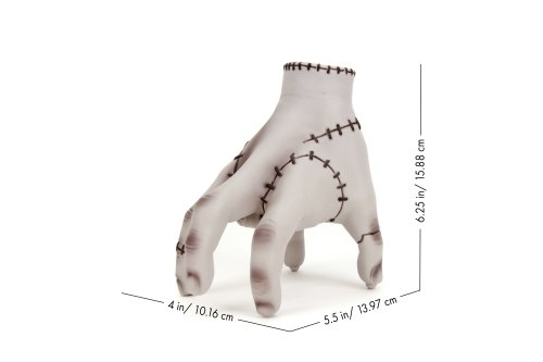 Dálkově ovládaná ledově studená ruka pro fanoušky a děti od 8 let Včetně dálkového ovladače a baterií Vyrobena z měkkého plastu v životní velikosti (18 cm) Zdobena strašidelným prošíváním Vyzařuje děsivé kouzlo rodiny Addamsových