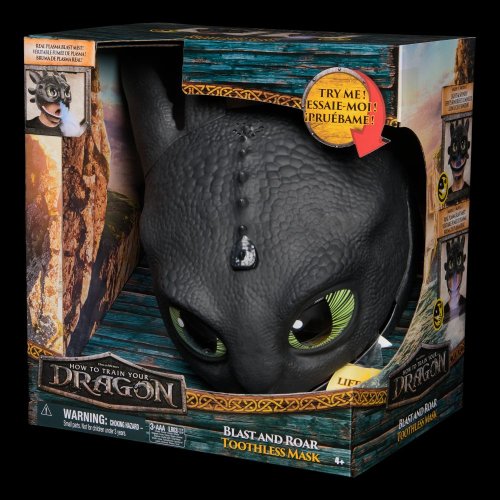 Po nasazení na hlavu upevníte pásek kolem brady. Následně pak otvíráním vašich úst aktivujete zvukové a světekné efekty. Maska dokonce umí chrlit páru imitující kouř z dračí tlamy.