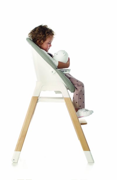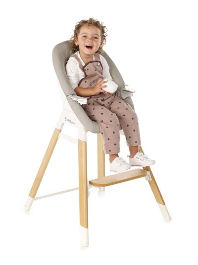 Woody je evoluční vysoká dětská židlička. Přizpůsobí se věku vašeho dítě od 6 měsíců až do 8 let. Lze ji použít jako vysokou dětskou židli, dětskou sedačku s opěradlem a také jako židli už pro větší děti.