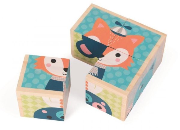 Kostky pro nejmenší! Moje první kostky - Zvířátka z lesa je zábavná hra ze 4 dřevěných kostek, ze kterých si můžete vytvořit 4 portréty lesních zvířátek (liška, králík, zajíc, psík). Víte jak tato zvířátka vypadají? Dokážete je z jednotlivých kostek poskládat? Kostky jsou skvělým dárkem k prvním narozeninám pro Vaše nejmenší ratolesti. Kostky jsou dodávány v originálním a praktickém kartonovém obalu. Vhodné pro děti od 12 měsíců.