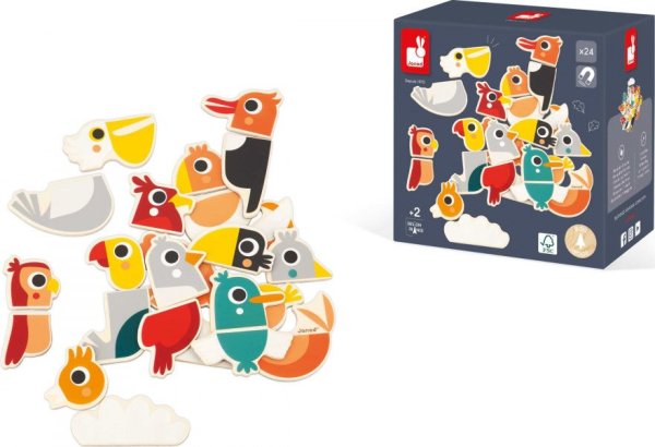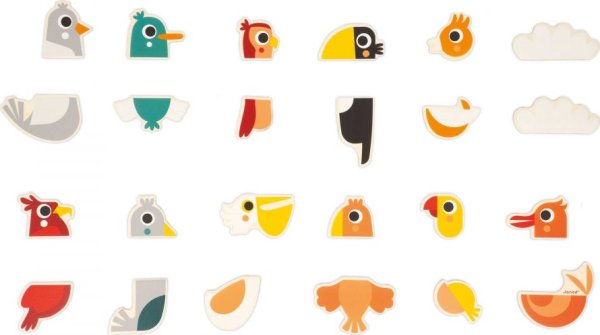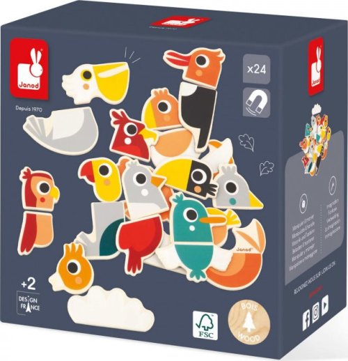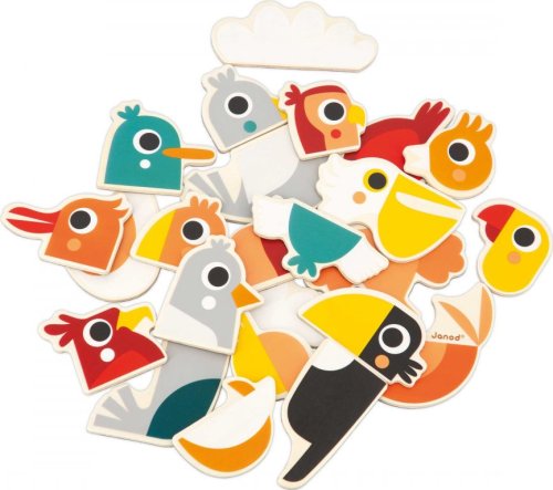 S touto sadou 24 dřevěných magnetů můžete tvořit na všech magnetických površích! Každý ptáček je rozdělen na 2 části a lze je sestavit nebo smíchat s dalšími půlkami ptáčků a vytvořit tak bláznivé ptáčky. Třeba pelikána? Tato poetická sada dřevěných magnetek se pyšní krásnými barvami a mraky, které pomáhají vytvářet scény oblohy nebo stromů. S těmito magnetickými ptáčky mohou děti na své tabuli vyzdobit své kresby a rozvíjet svou fantazii! Při skládání odpovídajících dílků bude třeba využít i svou paměť. Zkuste ptáčky pojmenovat: je to tukan nebo pelikán?