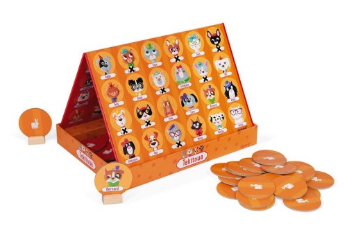 Uhádneš, jaké zvířátko má na kartičce tvůj soupeř? Dětská strategická hra s obrázky zvířat, v anglickém jazyce , podporuje rozvoj logiky, strategického plánování a jemné motoriky dětí. Cílem hry je vylučovací metodou uhádnout, jaké zvířátko má na kartičce protihráč. K dispozici jsou 2 hrací úrovně: začátečníci a pokročilí. Krabice slouží jako podstavec. Pravidla strategické hry jsou následující: - každý z hráčů si táhne 1 kartičku tak, aby ji ten druhý neviděl. Každý si pak vezme 24 nálepek a vzájemně hádají, jaké zvířátko je na kartičce protivníka. Kladením otázek se vylučují zvířátka na hrací ploše. Pokud je logické uvažování hráče správné, měl by se vylučovací metodou dostat k jednomu zvířátku - zvířátku, které má na kartě ten druhý hráč. Pro pokročilé je tu dodatečné pravidlo - prvních 5 otázek nesmí být o tom, jaké zvířátko má protihráč. Balení obsahuje 48 kartiček, hrací plochu, podstavec a 48 odnímatelných nálepek. Vhodné pro děti od 5 let.