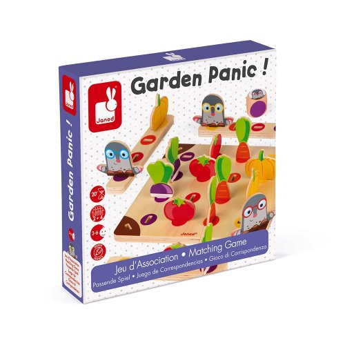 Pozor na krtky! Společenská hra pro děti na rychlost a pozornost. Cílem hry je naplnit svůj košík čtyřmi druhy zeleniny dříve než ostatní spoluhráči. Buď první, ale pozor na krtky v zahradě! Hru je možné využít v dřívějším věku na učení barev (třídění do množin podle barvy). Balení obsahuje dřevěnou hrací plochu, 4 dřevěné stojany, 1 hrací dřevěnou kostku, 20 dřevěných figurek. Hra rozvíjí: - soustředění a pozornost - strategické myšlení - rychlost Vhodné pro děti od 3 let.