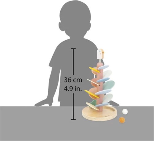 Kreativní stavebnice je nejen zábavná, ale také rozvíjí jemnou motoriku, logické myšlení a pochopení příčiny a následku. Základnu ve tvaru kmene stromu jednoduše sestaví dospělý – a pak už se mohou děti pustit do zdobení stromu barevnými listy podle přiložené modelové karty. K dispozici je 14 listů v různých barvách a velikostech. Jakmile je strom hotový, přichází na řadu zábavný moment: spuštění dřevěných kuliček! Součástí sady jsou dvě kuličky, které se kutálejí po listech a vytvářejí jemnou, opakující se zvukovou kaskádu. Děti mohou sledovat jejich plynulý pohyb – buď jednotlivě, nebo obě najednou – až do místa, kde se zastaví v dolní části stojanu. Edukativní hračka s jemným designem a přírodními materiály (dřevo a plsť) je nejen skvělou zábavou, ale také krásným dekoračním doplňkem do dětského pokoje. Výška stromu je 36 cm, průměr základny 19,3 cm. Hračka patří do oblíbené kolekce Sweet Cocoon a je vyrobena z FSC™ certifikovaného dřeva z udržitelně obhospodařovaných lesů.