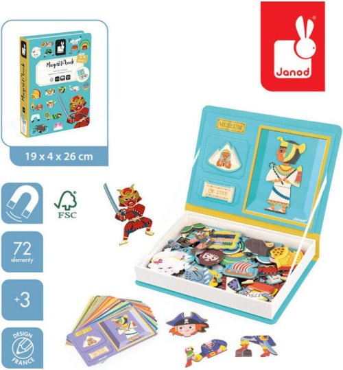 s touto krásnou barevnou magnetickou hračkou se vaše dítě seznámí se světem historie děti podle předlohy umisťují magnetky na desku praktické balení zajistí, že se hračka dá pohodlně přenášet magnetická kniha pro děti je krásná nadčasová hračka pro každé dítě, která se bude líbit několika generacím vyrobená z kvalitních materiálů a zdravotně neškodných barev balení obsahuje: 60 magnetek a 12 kartiček