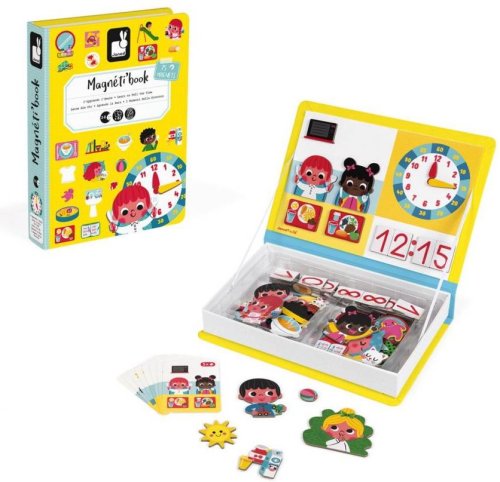 Magnetická kniha - úžasná naučná hračka! Zábavná forma učení poznávání hodin. Děti podle předlohy umisťují magnetky na desku. Praktické balení zajistí, že se hračka dá pohodlně přenášet. Děti se s ní zabaví nejen doma, ale i na dlouhých cestách. Magnetická kniha pro děti je krásná nadčasová hračka pro každé dítě, která se bude líbit několika generacím a je vyrobená z kvalitních materiálů a zdravotně neškodných barev. Balení obsahuje 75 barevných magnetů, ciferník a kartičky zobrazující aktivity dětí, prováděné v různých denních dobách (16 motivů). Vhodné pro děti od 3 let.