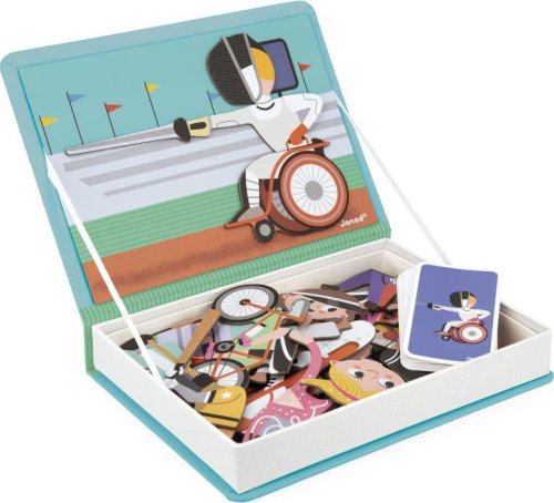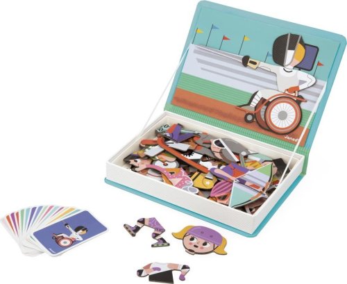 děti podle předlohy umisťují magnetky na desku praktické balení zajistí, že se hračka dá pohodlně přenášet magnetická kniha pro děti je krásná nadčasová hračka pro každé dítě, která se bude líbit několika generacím vyrobená z kvalitních materiálů a zdravotně neškodných barev balení obsahuje: 48 magnetek a 16 kartiček reprezentující známé sporty