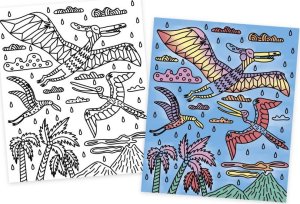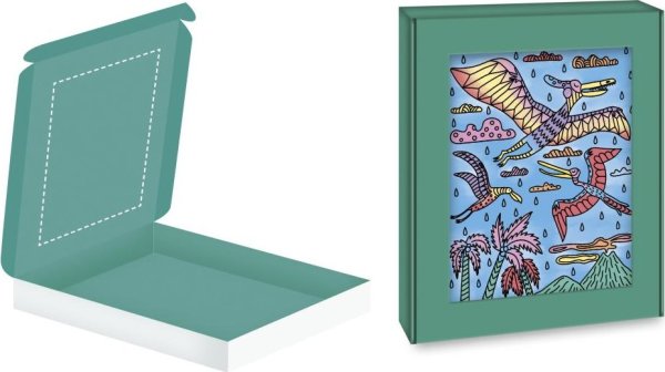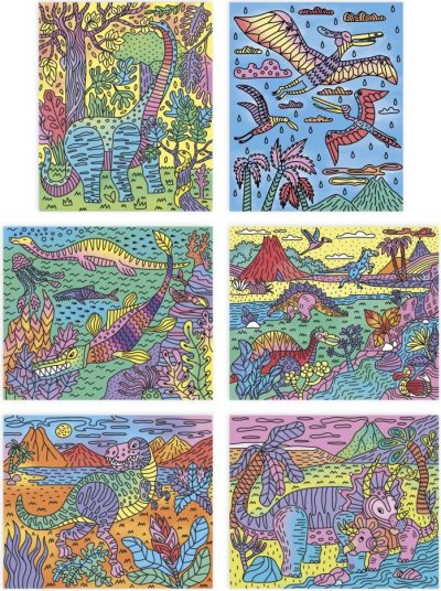 speciální vodní štětec (vybavený zásobníkem na vodu) umožňuje malým dětem postupně smáčet černé obrysy každého obrázku a uvolňovat tak barvu odpovídající každému místu už žádné barvy na plakáty, které se dostanou úplně všude: i malé děti se mohou zapojit do této kreativní činnosti a získat nádherné výtvory výrobek s tématikou dinosaurů zobrazuje druhy, které si děti jistě zamilují naučí se dávat pozor, aby se barvy navzájem nemíchaly součástí je krabička, kterou lze proměnit v rámeček, do kterého si můžete své krásné výtvory zarámovat dokončení každého obrázku trvá přibližně 1 hodinu tato aktivita rozvíjí jemnou motoriku, trpělivost a soustředění balení obsahuje: 6 kouzelných obrázků