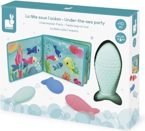 Koupací sada potěší děti od 10 měsíců věku a přinese spoustu zábavy do každodenní hygieny. Obsahuje voděodolnou knížku „Oceánská párty“ a 3 rozprašovací hračky ve tvaru rybiček , které podněcují dětskou fantazii i rozvoj jemné motoriky. Příběh sleduje skupinku mořských kamarádů, kteří se vydávají na párty na dno oceánu. Děti na stránkách objevují želvy, klauny, krevety, hvězdice a další mořské tvory – a mohou příběh doslova oživit pomocí rybiček, které stříkají vodu po zmáčknutí bříška. Praktické provedení: Rozprašovače lze rozebrat na dvě části, což usnadňuje čištění a schnutí mezi koupáním.