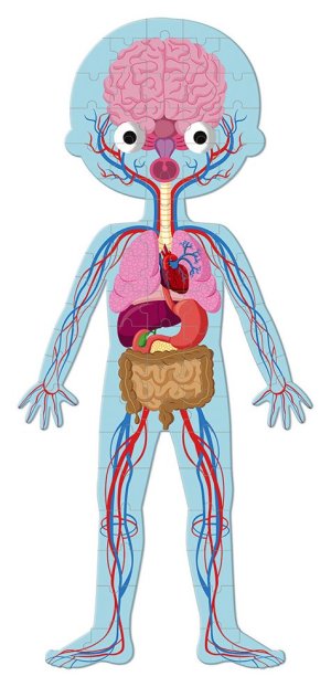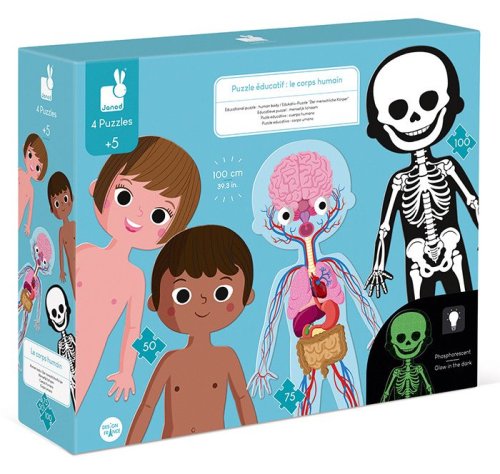 Úžasně hravé poznávání lidského těla pro zvídavé školáky! Nádherné vzdělávací puzzle s motivem Lidského těla - tělo, orgány a kostra, včetně 4 karet soustav lidského organismu (popis NENÍ v českém jazyce). Děti skládají puzzle a zároveň se učí jednotlivé části a soustavy lidského těla. Poskládat mohou: - oboustranné tělo (50 dílků) - z jedné strany dívka, z druhé chlapec - orgány (75 dílků) - kostru (100 dílků), která navíc svítí ve tmě. Puzzle rozvíjí logické myšlení, pozornost, paměť, představivost, jemnou motoriku, a zároveň se děti učí vnímat vztah mezi částmi a celkem. Vhodné pro děti od 5 let.