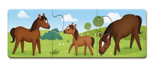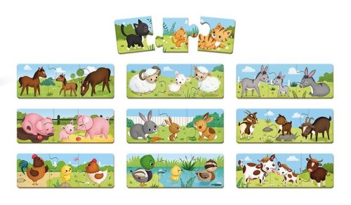 Vyhledej, přiřaď rodiče mláďátkům a řekni, jaké zvířátka vidíš. Děti si procvičují a rozvíjejí své schopnosti: - seznamují se s obydlím zvířat, - rozvíjejí své znalosti o přírodě, - rozvíjí své vizuální a kombinační schopnosti, - procvičují si svou koordinaci očí a rukou, - rozvíjejí zručnost a pohyby svých rukou, - obohacují svou slovní zásobu. Balení obsahuje 30 dílků. Vhodné pro děti od 3 let.