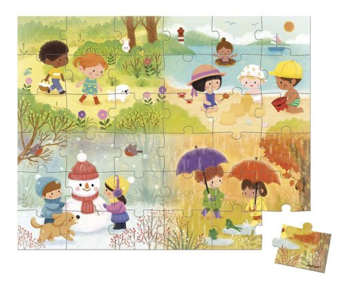 Puzzle JANOD s obrázkem čtyřech ročních období. Puzzle je baleno v originálním a praktickém kufříku vhodném na doma i na cesty. Součástí balení je plakátová předloha. Rozměr složeného puzzle cca 50 x 40 cm