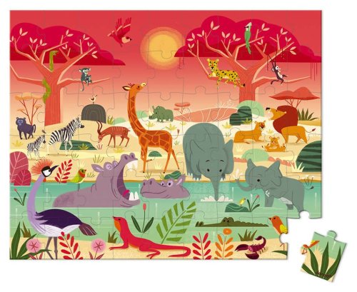 Puzzle JANOD s obrázkem savany. Puzzle je baleno v originálním a praktickém kufříku vhodném na doma i na cesty. Součástí balení je plakátová předloha. Rozměr složeného puzzle cca 50 x 40 cm