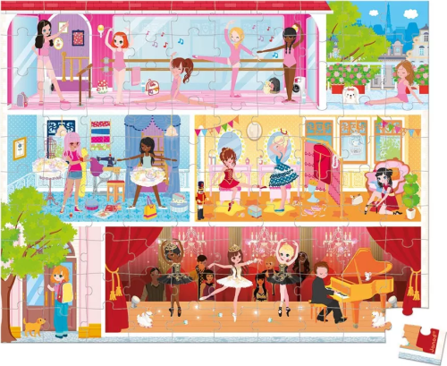Nádherné obrázkové puzzle pro dívky s motivem baletek v baletní škole . Puzzle jsou baleny v originálním a praktickém kufříku se zavíráním, takže jsou vždy uklizené a zároveň jsou pěkným doplňkem do dětských pokojíčků. Rozměr složeného puzzle cca 50 x 40 cm