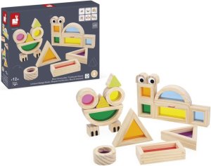 Objevte svět barev a tvarů s touto originální sadou 12 průhledných stavebních bloků , která rozvíjí jemnou motoriku, fantazii a tvořivost . Skvělá pro nejmenší děti i malé designéry! Součástí balení je: