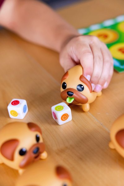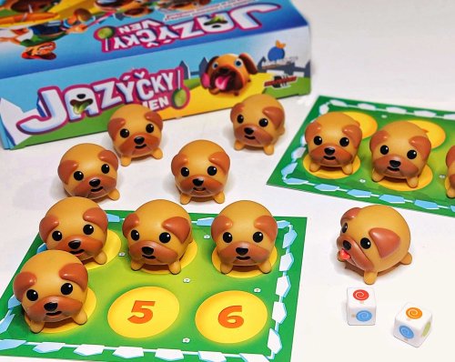 ACH NE! MOPSLÍCI SNĚDLI VŠECHNA LÍZÁTKA!Naštěstí teď jejich jazýčky mají barvu lízátka, které snědli!V každém kole se snažíte spárovat barevná lízátka hozená na kostkách s mopslíky, o kterých si myslíte, že je slízali. Když mopslíky jemně stlačíte, vystrčí jazýčky. A je jedno, jak jsou roztomilí, tohle jim neprojde... Vítězem je hráč, který jako první najde shodu mezi šesti lízátky a mopslíky.Jazýčky ven! jsou nástupcem starší hry Tučňáci od stejného vydavatele. Zvířátka jsou jiná, zábava se nemění!Obsah balení:4 mopslí karty12 mopslíků2 lízátkové kostkyčeská a slovenská pravidla