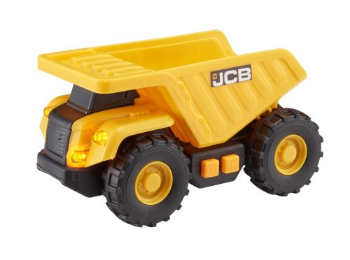 JCB nákladní auto se světelnými a zvukovými efekty. Vhodné pro děti od 3 let. Výrobek vyžaduje 3× LR44 baterie, které jsou součástí balení.