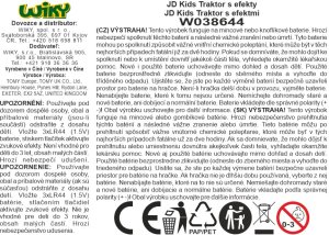 JD Kids Monster Treads Traktor se zvukovými a světelnými efekty. Aktivace tlačítky na střeše traktoru. Gumové pneumatiky, volná kola. Baterie 3xAG13 (LR44) jsou součástí balení.