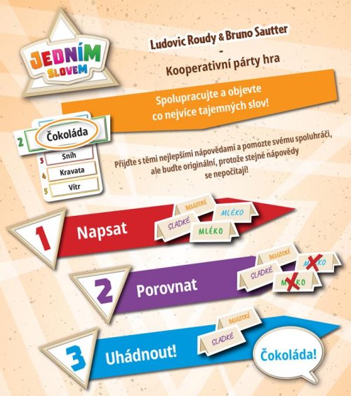 Jedním slovem je kooperativní párty hra. Všichni hrajete společně, abyste dosáhli toho nejlepšího skóre! Společně nechte jednoho z hráčů – aktivního hráče – hádat tajemné slovo, ke kterému napíšete nápovědy na své podstavce.