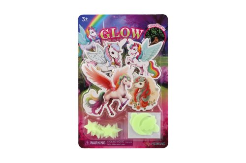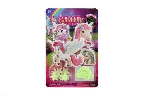 Sada obsahuje roztomilé jednorožce, kteří po nasvícení ve tmě rozjasní dětský pokoj a vytvoří tak okouzlující atmosféru plnou magie. Svítící jednorožci přinesou do dětského pokoje kouzelný nádech, který pomůže dětem usnout a vytvoří klidné a magické prostředí pro spaní. Rozměry balení 17 x 25 x 1 cm. Vhodné pro děti od 3 let.