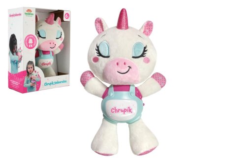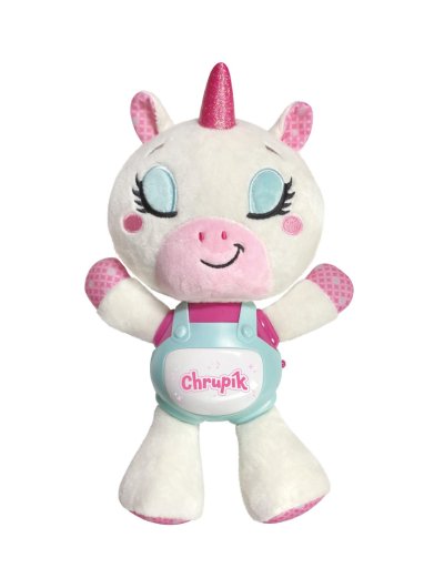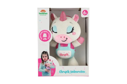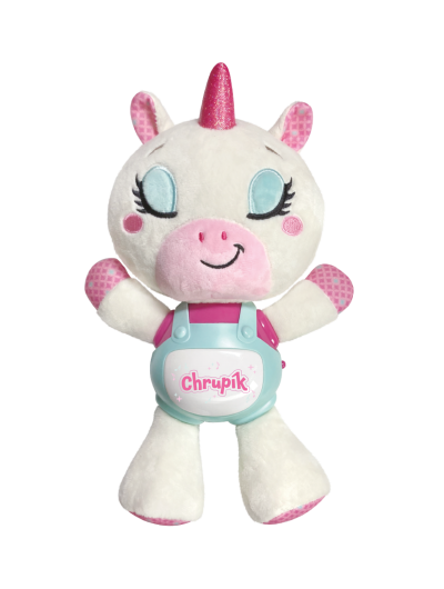 Jednorožec Chrupík – kouzelný usínáček se světlem a zvuky pro klidné večery. Usínání bude odteď pro děti kouzelným zážitkem. Roztomilý Jednorožec Chrupík kombinuje mazlivého plyšového kamaráda s uklidňujícím světlem a zvuky. Je ideálním společníkem pro večerní rituály a první samostatné usínání. Jednorožec je vyroben z hebkého plyše a má plastový panel se světelnými a zvukovými efekty. Po stisknutí tlačítka zahraje jemnou melodii, která uklidní dítě a podbarví příjemnou atmosféru tlumeným světýlkem. Díky napájení na baterie lze hračku snadno používat kdekoliv – v postýlce, kočárku i na cestách. Rozměry balení 22 x 30 x 11 cm Vhodné pro děti od 6 měsíců.