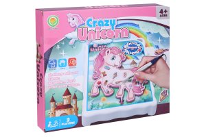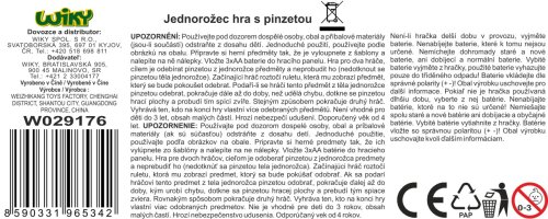 Jednorožec hra. Velikost hrací tabulky je 18x3,5x15 cm. Obsah balení: hrací deska s pinzetou. 12 předmětů. 12 samolepek - aplikujte na jednotlivé předměty. Roztoč ruletu a snaž se vyjmout předmět z těla jednorožce pomocí pinzety. Při kontaktu pinzety s povrchem hrací desky se jednorožec rozvibruje. 1 nebo 2 hráči. 3xAA nejsou součástí. Ve spodní části hrací plochy se nachází malá přihrádka pro uschování předmětů.